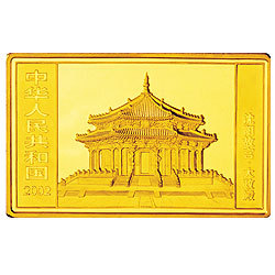 (五)5盎司长方形金币为精制币,含纯金5盎司,成色99.9%,规格40毫米×64毫米,面额2000元,发行量118枚。