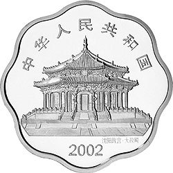 (十)1盎司梅花形银币为精制币,含纯银1盎司,成色99.9%,直径40毫米,面额10元,发行量 6800枚。