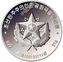 朝中社2011年12月31日报道,朝鲜最高人民会议常任委员会近日发布政令,宣布发行金正日当选朝鲜人民军最高司令官20周年金银币一套。该套纪念币为朝鲜法定货币,包含金币和银币各一枚。
