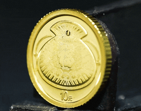 1克圆形金质纪念币为普制币,含纯金1克,直径10毫米,面额10元,成色99.9%,最大发行量150000枚。