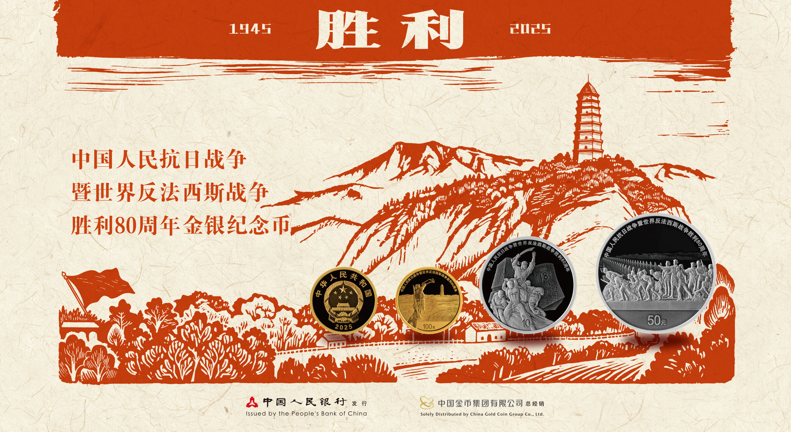 中国人民抗日战争暨世界反法西斯战争胜利80周年纪念币发行公告