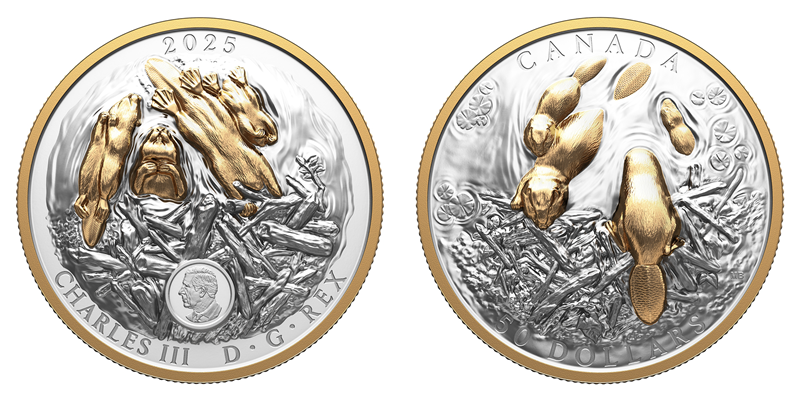 加拿大发行加拿大象征:河狸双面超高浮雕镀金银币